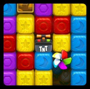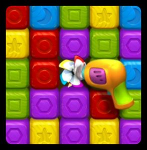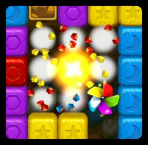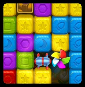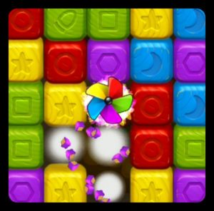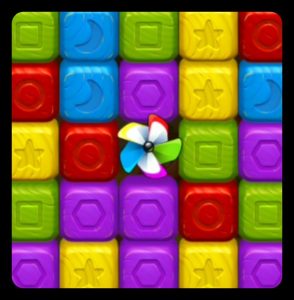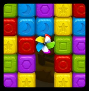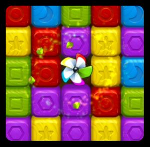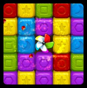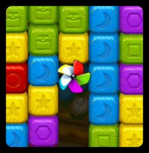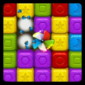 風車に接しているブロックを崩すと、羽に色がつき、全てに色が塗られると飛んでいく。